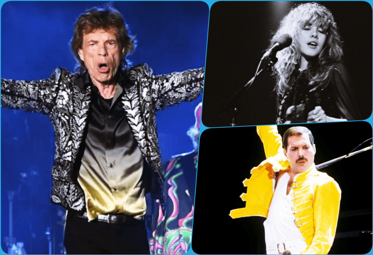 - Mick Jagger (The Rolling Stones): Ha sido uno de los vocalistas más importantes de la historia de la banda Rolling Stones. Fue incluido en el Salón de la Fama del Rock and Roll en 1989, como también en el Salón de Fama del Reino Unido, en 2004. Ha ganado tres Grammys y varios reconocimientos más. Para Billboard es el cantante número uno del rock y para la revista Rolling Stone clasifica como el número 52 entre los mejores cantantes 200 de todos los tiempos.
