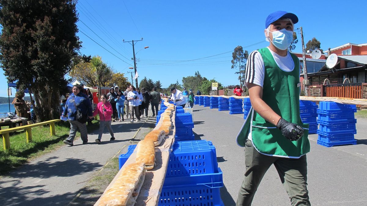 Se creó el sándwich de más de 2 km de largo, utilizando ingredientes locales como choritos y salmón. Equipos de trabajo se ubicaron cada 100 metros para llevar a cabo esta tarea.